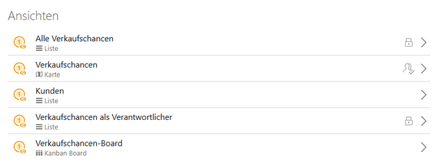 Kein Symbol bedeutet, dass die Ansicht von Ihnen angelegt und auf persönlich gesetzt wurde. Diese Ansicht können nur Sie sehen und bearbeiten. | |