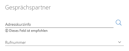 Ein Verknüpfungsfeld kann beim Bearbeiten des Datensatzes ausgefüllt werden. In einem Verknüpfungsfeld kann immer nur ein Datensatz eingetragen sein. Wenn Sie den Wert eines Verknüpfungsfelds ändern, wird die vorherige Verknüpfung gelöscht und durch die neue ersetzt. Ein Beispiel für ein Verknüpfungsfeld ist das Feld Adresskurzinfo in einem Telefonat-Datensatz.