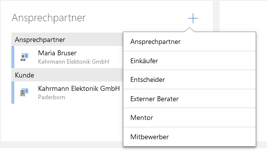In einer gruppierten Verknüpfungsliste werden die verknüpften Datensätze nach Verknüpfungsarten gruppiert. Ein Beispiel für eine gruppierte Verknüpfungsliste ist die Liste Kontaktpersonen in einer Verkaufschance.