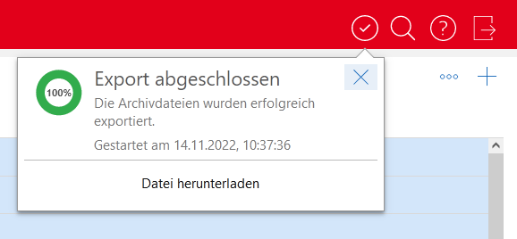 Der Export wurde vollständig und fehlerfrei durchgeführt. Klicken Sie auf das Symbol, um die Exportdatei herunterzuladen.