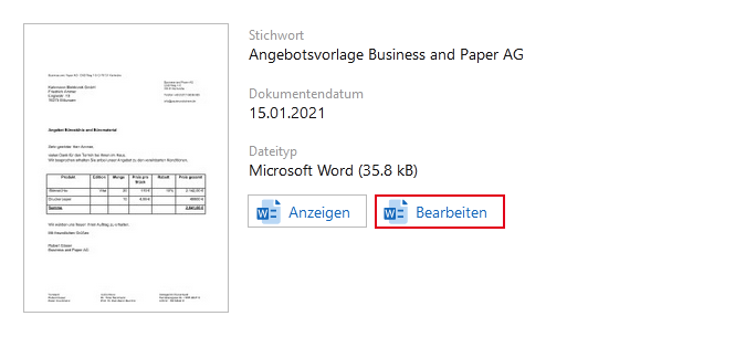 - Das Dokument wird übertragen. Sie können das Dokument jetzt in der entsprechenden Anwendung öffnen.