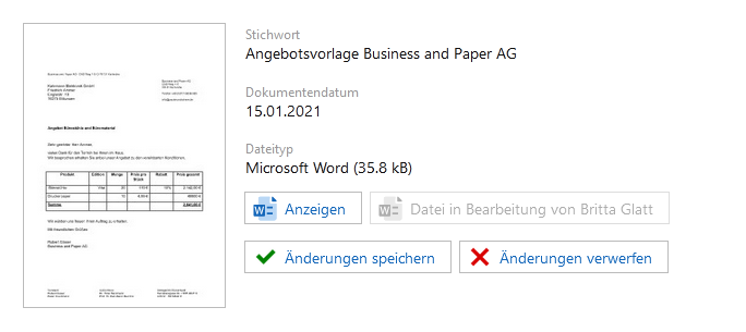 - Klicken Sie im Dokument-Datensatz in SmartWe auf Änderungen speichern.