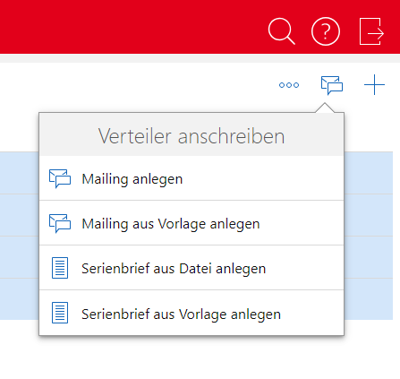 Verteiler können Sie in Mailings und in Serienbriefen anwenden. Ein neues Mailing oder einen neuen Serienbrief können Sie direkt aus einem Verteiler oder einer Liste mit mehreren Verteilern anlegen.