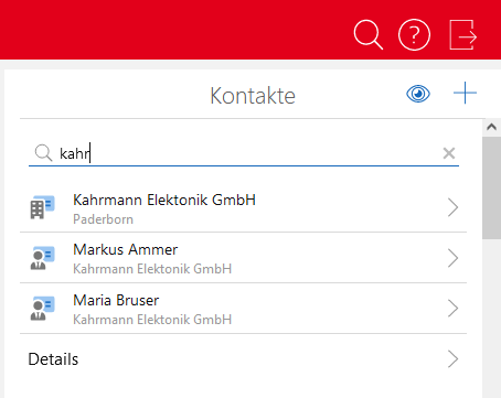 - In einer erweiterten Liste oder Ansicht ist ebenfalls ein Suchfeld verfügbar, das auf den geöffneten Datensatz-Typ beschränkt ist.