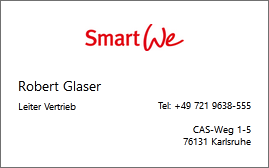 Eine Visitenkarte besteht in der Standardkonfiguration aus einem Logo und den Kontaktdaten einer Person.