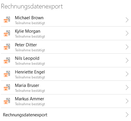 Die Rechnungsdaten aller bestätigten Teilnehmer können Sie zur Weiterverarbeitung exportieren.