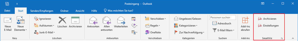 - Klicken Sie im Menüband von Microsoft Outlook im Abschnitt SmartWe auf Einstellungen.