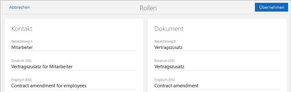 - Geben Sie im Feld Bezeichnung den Wert Vertragszusatz ein.