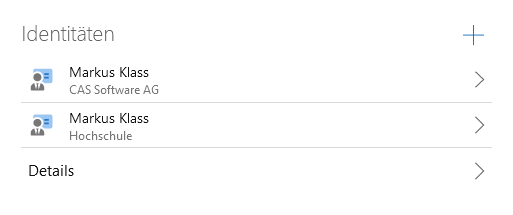 Wenn bereits mindestens eine Identität zu einem Kontakt angelegt wurde, können Sie weitere Identitäten auch im Block Identitäten hinzufügen.