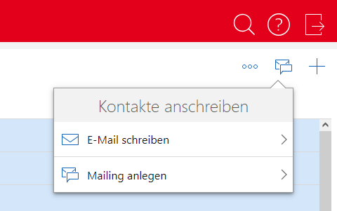Klicken Sie auf die Schaltfläche Kontakte anschreiben, um das Menü zu öffnen.