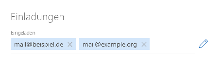 - Tragen Sie im Block Einladungen in den entsprechenden Feldern die E-Mail-Adressen der externen Teilnehmer ein.