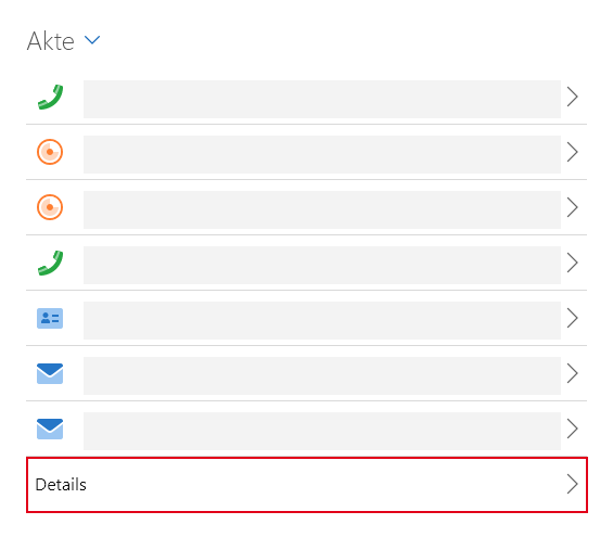 - In einem zum Lesen geöffneten Datensatz klicken Sie im Block Akte auf Details oder Mehr Elemente.