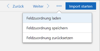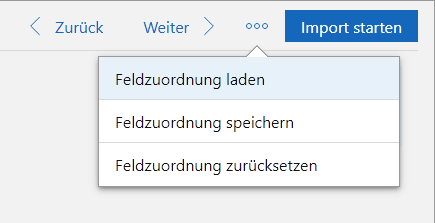 Feldzuordnung zurücksetzen | Wenn Sie Ihre Feldzuordnungen wieder entfernen möchten, wählen Sie Feldzuordnung zurücksetzen. Dabei werden alle Feldzuordnungen des aktuellen Import-Vorgangs auf den Ursprungszustand zurückgesetzt. |