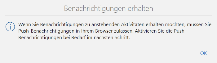 - Klicken Sie in der Meldung auf OK, um im nächsten Schritt die Benachrichtigungen zu akzeptieren.