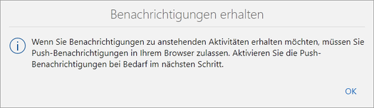 Das Senden von Push-Benachrichtigungen muss im Browser zugelassen werden, damit Sie die Benachrichtigungen erhalten können.