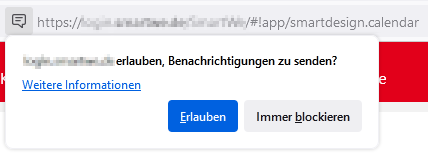 - Klicken Sie in der Meldung des Browsers auf Erlauben o. ä., wenn Sie die Benachrichtigungen zulassen möchten. Die Meldung wird im oberen Bereich des Browsers angezeigt.