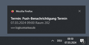 - Nachdem Sie die Benachrichtigungen erlaubt haben, werden die Benachrichtigungen zum eingestellten Zeitpunkt über die Benachrichtigungsfunktion des Betriebssystems angezeigt.