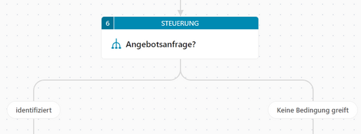 Elemente vom Typ Steuerung werden mit einer petrolfarbenen Titelzeile angezeigt. Bei Bedingungen werden direkt darunter die Fälle angezeigt, jedoch ohne weiteren Kennzeichnungen wie Nummern, Farben oder Symbole. Unterhalb der Bedingungen werden die Elemente angezeigt, die bei Eintreffen der jeweiligen Bedingung berücksichtigt werden sollen. | |