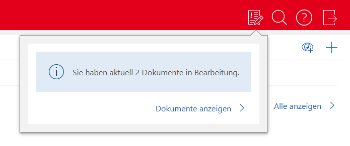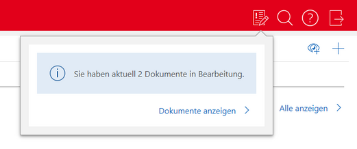Wenn Sie aktuell ein oder mehrere Dokumente in Bearbeitung haben, wird in der Kopfzeile von SmartWe ein Symbol angezeigt.